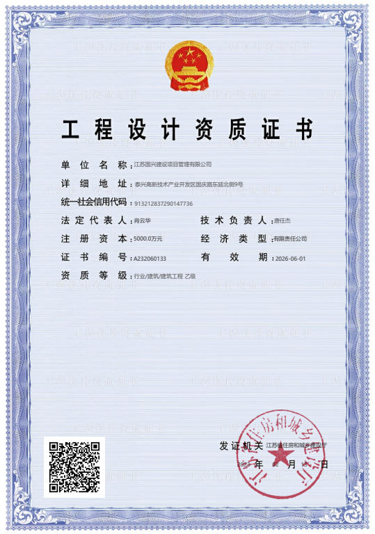 【资质证书】工程设计资质证书