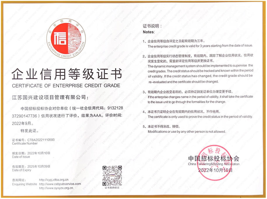 【资信证书】企业信用等级证书——中国招标投标协会