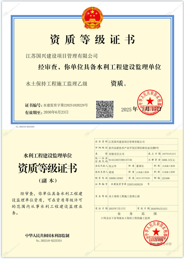 【资质证书】水土保持工程施工监理资质证书