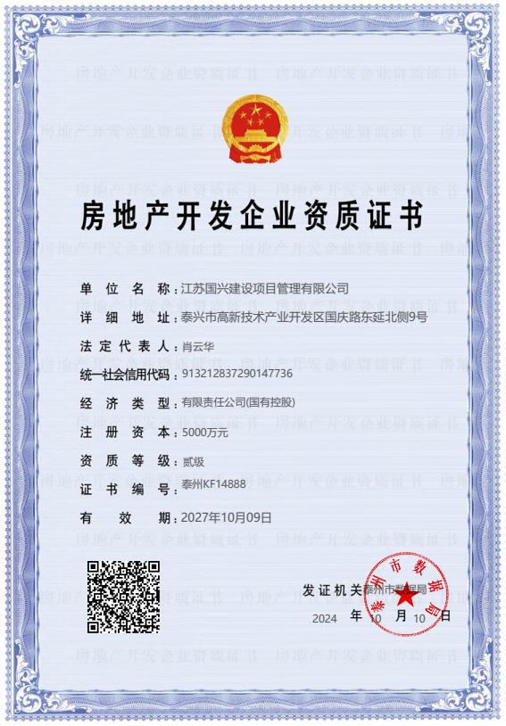 【资质证书】房地产开发企业资质证书