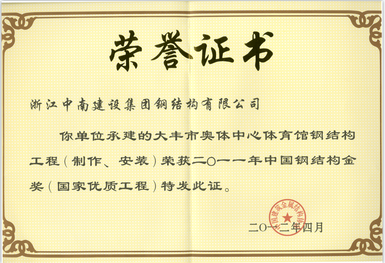 2012年大丰市奥体中心体育馆钢结构-金刚奖