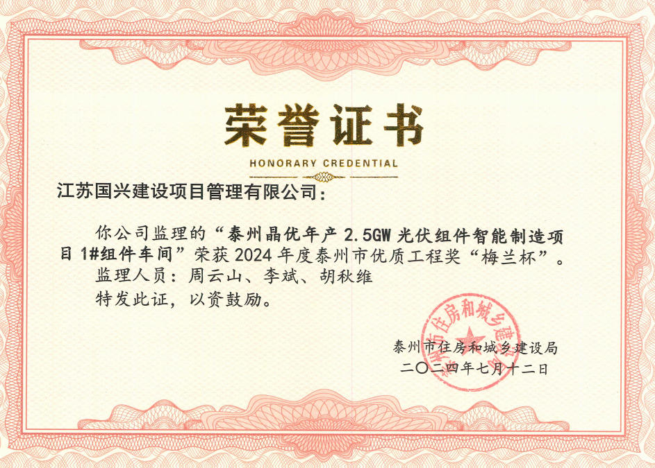泰州晶优年产2.5GW 光伏组件智能制造项目