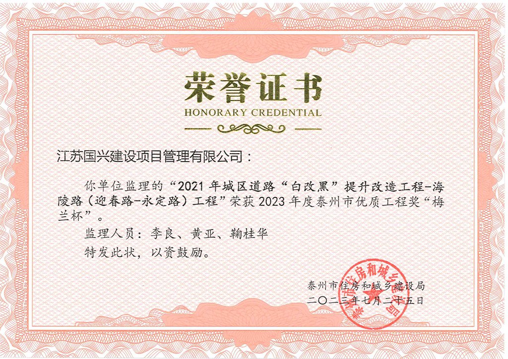 2021年城区道路“白改黑”提升改造工程-海陵路(迎春路-永定路)